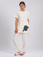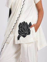 Elevate your style with our Ivory Abstract Floral Patchwork Set, adorned with elegant ivory abstract floral patchwork. This ensemble includes a matching dupatta, featuring the same abstract patchwork, adding a harmonious touch to this outfit. The kurta’s relaxed fit ensures comfort while the bold contrast of black and ivory makes a statement. Perfect for any special occasion, this set seamlessly blends tradition and contemporary fashion.