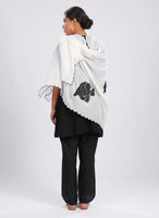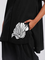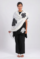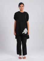 Elevate your wardrobe with this Black and White Abstract Floral Patchwork Set. The black kurta is adorned with striking white abstract floral patchwork and is paired with black pleated pants for a refined look. The set is completed with a beautifully patch-worked ivory dupatta that features matching abstract floral motif, adding a touch of elegance and sophistication.