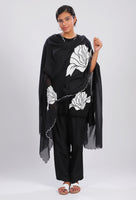 - Black dupatta with ivory abstract floral motif