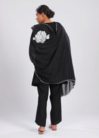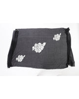 An artful dance of bold ivory florals against a black canvas. Draped or wrapped, it transforms any look into one of undeniable sophistication, embodying modern chic with a touch of couture flair.