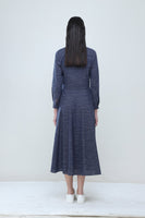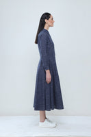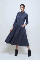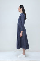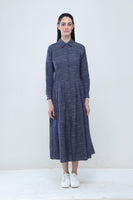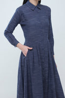 Cotton Slub Multi-panel front open dress with side pockets and French cuffs.