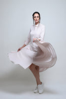 Pink Striped lehenga inspired multi-panel shirt dress.