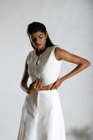 • Hand-embroidered crop blouse made with loop embroidery technique with front zipper opening.