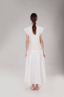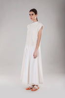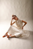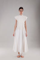 • 100% silk dress with cotton singlet for comfort and breathability. Extended shoulder with broad panel and gusset detail, panels added to the bodice for more shaping and fit.