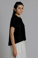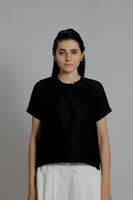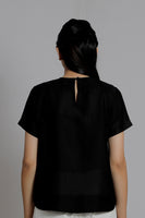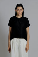 Embroidered Black Woven Tee