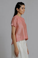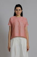 Woven tee embellished with thread, pearls and signature chanderi silk butterflies.
