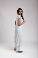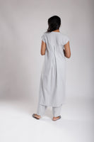 Our super-soft cotton kurta and salwar set that you'd want to lounge in all day. The adjustable button at the back with a relaxed fit tapered salwar trouser makes this Oh so comfortable. A sleek staple for your everyday.